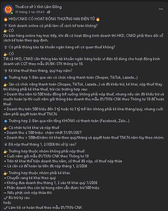 - + Các hộ, cá nhân có thu nhập từ kinh doanh trên các nền tảng khác.