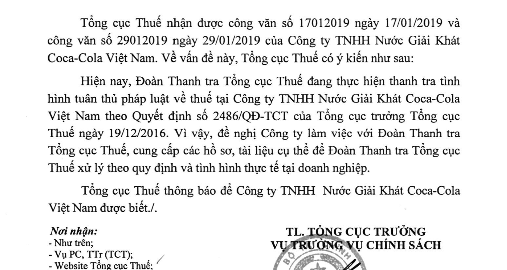 Ngày 27-11, HĐXX Tòa án nhân dân TP.HCM đã tuyên bác đơn kiện của Coca-Cola Việt Nam với Cục Thuế, giữ nguyên quyết định truy thu và xử phạt 821 tỉ đồng. Trước đó, theo thông tin từ Tổng cục Thuế (Bộ Tài chính), cơ quan này đã ban hành quyết định về việc giải quyết khiếu nại lần đầu với Công ty TNHH nước giải khát Coca-Cola Việt Nam (Coca-Cola Việt Nam). Theo đó, cơ quan thuế không chấp thuận nội dung khiếu nại và giữ nguyên quyết định xử phạt với doanh nghiệp (DN) này. Trước đó, lãnh đạo Tổng cục Thuế đã ký quyết định xử phạt hành chính về thuế qua thanh tra chấp hành pháp luật thuế đối Coca-Cola, tổng tiền phạt hơn 821 tỉ đồng. Sau quyết định này, Coca-Cola Việt Nam đã nộp 471 tỉ đồng dù bày tỏ quan điểm không đồng thuận với phần lớn các kết luận của Tổng cục Thuế. Cùng với đó, Coca-Cola Việt Nam nộp đơn khiếu nại lên Tổng cục Thuế về một số nội dung liên quan đến kết luận của cơ quan thuế. Theo đại diện Tổng cục Thuế, cơ quan này đã gửi kết luận giải quyết khiếu nại đến Coca-Cola Việt Nam. Nội dung khiếu nại lần 1 của Coca-Cola tập trung vào một số vấn đề như cơ quan thuế không chấp nhận cho công ty này được đưa vào chi phí được trừ với các khoản mà trước đây Coca-Cola Việt Nam đã kê khai, trong đó có sản phẩm, vật phẩm khuyến mại; tủ lạnh cung cấp cho các tổ chức, cá nhân sử dụng; tài sản cố định như vỏ chai, két nhựa, tiền đặt cọc vỏ chai; một số chi phí mà công ty chưa cung cấp được tài liệu chứng từ… Tổng cục Thuế đã xác minh các nội dung liên quan và có kết luận rõ ràng. Theo kết quả xác minh, từ năm 2007 – 2015, Coca-Cola Việt Nam đã dùng các sản phẩm do công ty sản xuất và vật phẩm mua ngoài để thực hiện các chương trình khuyến mãi.