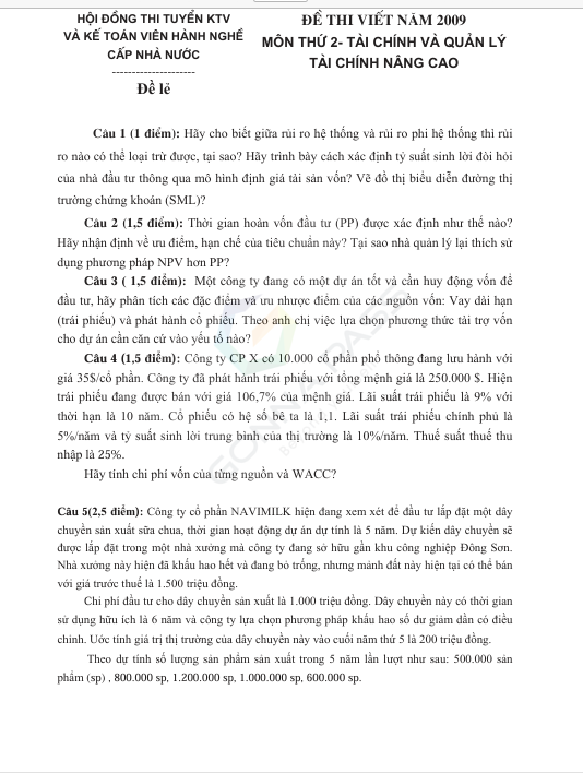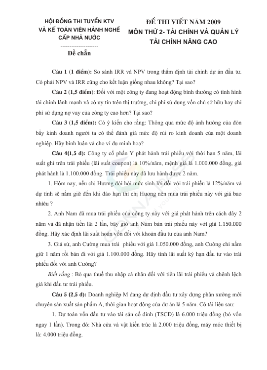 Gonnapass xin gửi lại sưu tầm Đề thi và Đáp án tham khảo môn Tài chính năm 2008 của kỳ thi kế toán và kiểm toán viên Việt Nam (CPA) do Bộ Tài chính tổ chức để các bạn tự ôn thi.