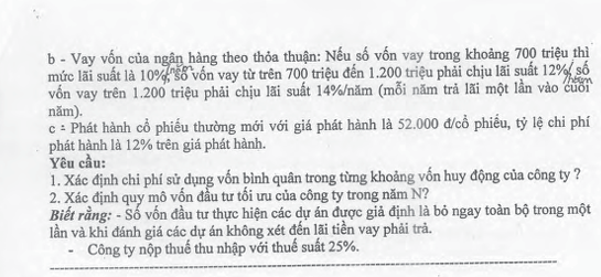 - Xác định chi phí sử dụng vốn bình quân trong từng khoảng vốn huy động của công ty?