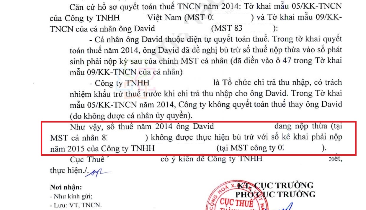 Do cá nhân nhận được thu nhập tại nước ngoài nên không đủ điều kiện ủy quyền quyết toán thuế mà phải tự đi quyết toán