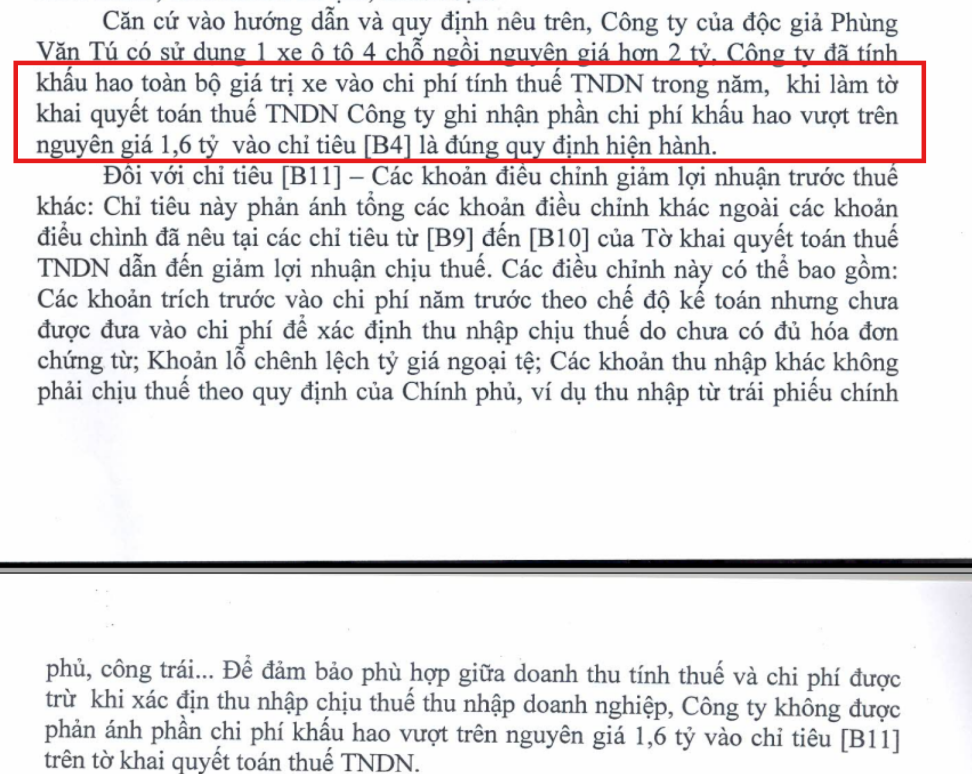 – Không được tính vào chi phí được trừ khi xác định thu nhập chịu thuế: Phần trích khấu hao tương ứng với nguyên giá vượt trên 1,6 tỷ đồng/xe đối với ô tô chở người từ 9 chỗ ngồi trở xuống (trừ: ô tô dùng cho kinh doanh vận tải hành khách, kinh doanh du lịch, khách sạn; ô tô dùng để làm mẫu và lái thử cho kinh doanh ô tô); phần trích khấu hao đối với tài sản cố định là tàu bay dân dụng, du thuyền không sử dụng kinh doanh vận chuyển hàng hóa, hành khách, kinh doanh du lịch, khách sạn.