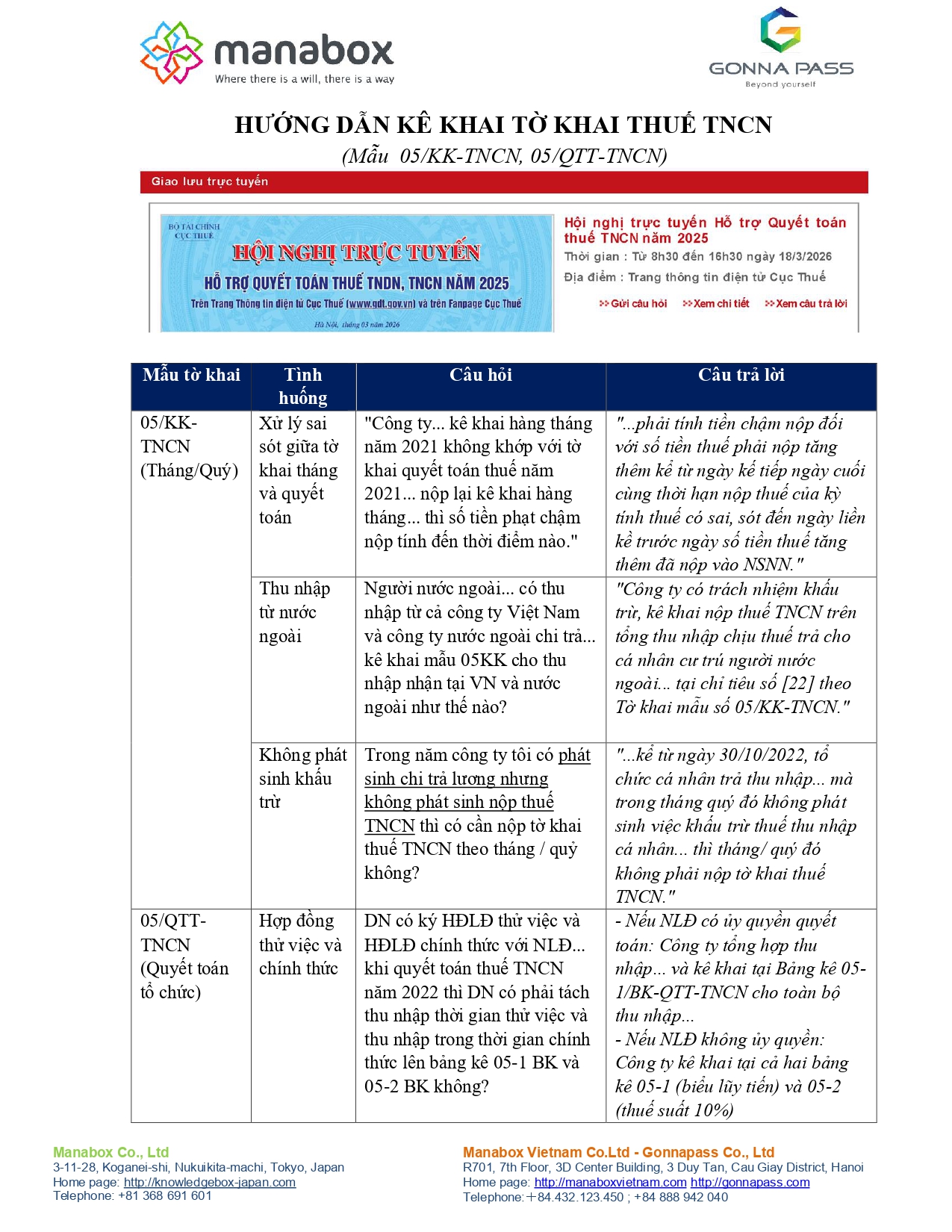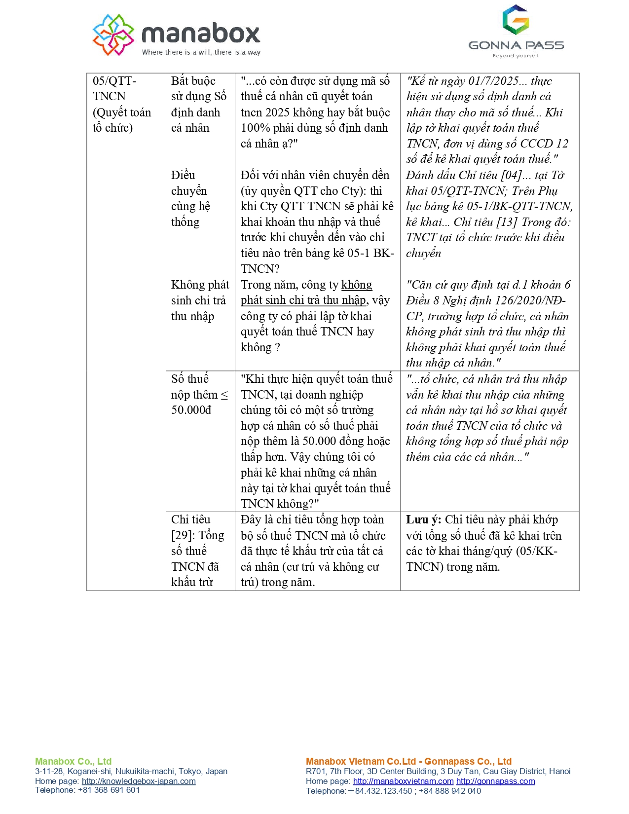 - > Trường hợp không nộp bảng kê, doanh nghiệp cần kê khai bổ sung tờ khai Quyết toán thuế TNCN mẫu 05/QTT-TNCN kèm bảng kê 05-1/BK-QTT-TNCN.