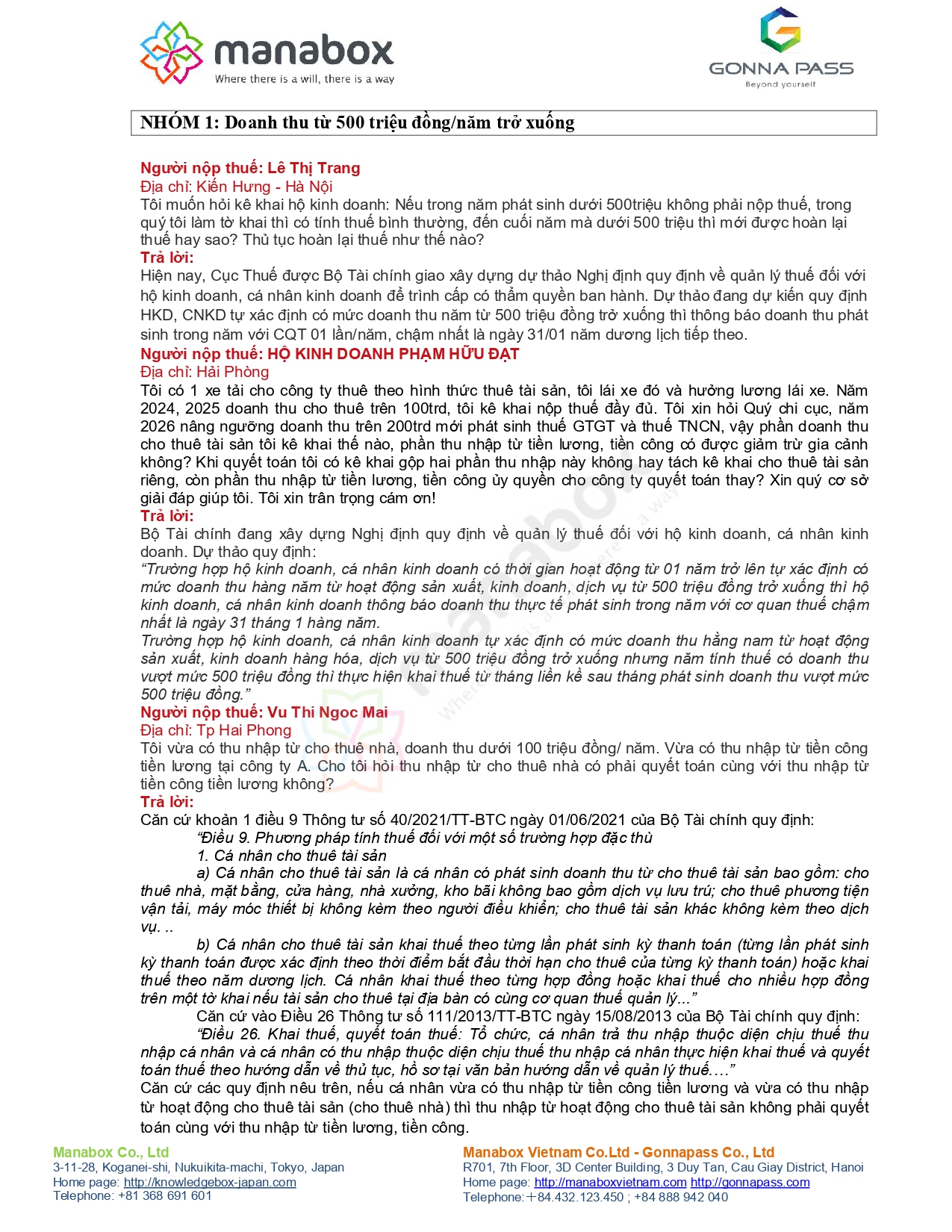 Rất nhiều vướng mắc của hộ kinh doanh đã được giải đáp tại Hội thảo hỗ trợ hộ kinh doanh của Manabox Việt Nam về kê khai thuế cùng các hướng dẫn.
